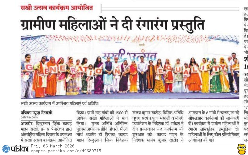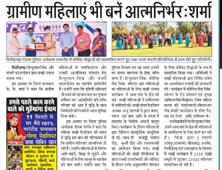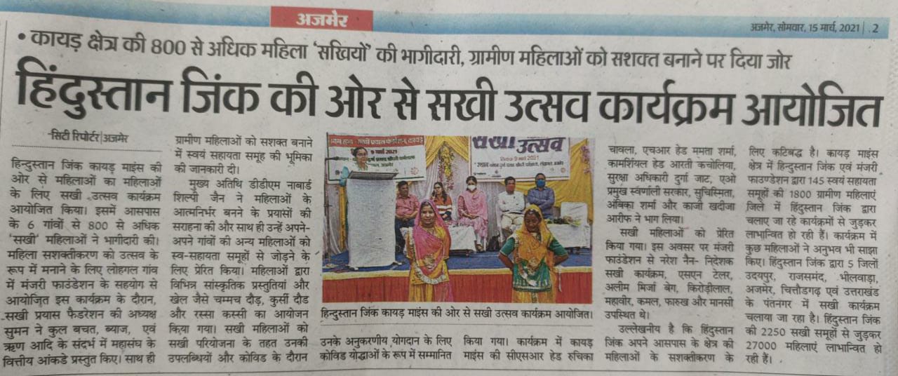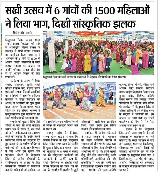 हिंदुस्तान जिंक द्वारा महिलाओ का महिलाओ के लिए सखी उत्सव आयोजित