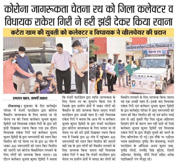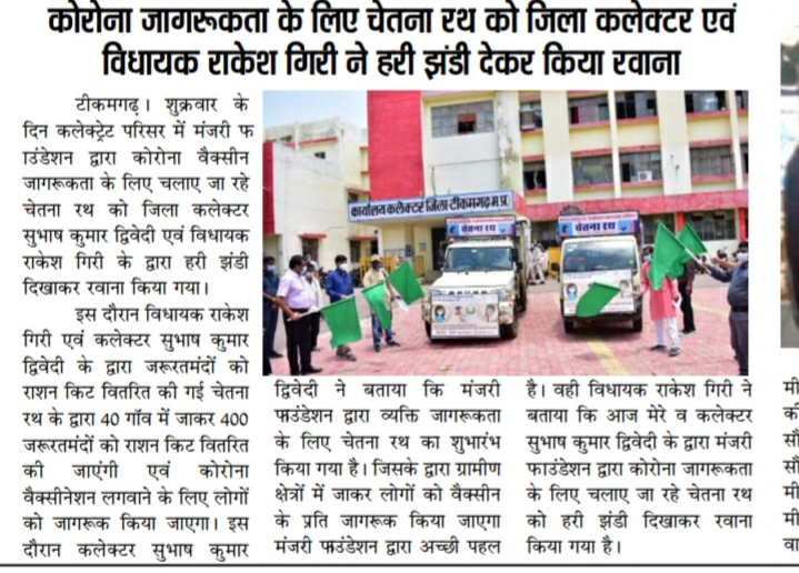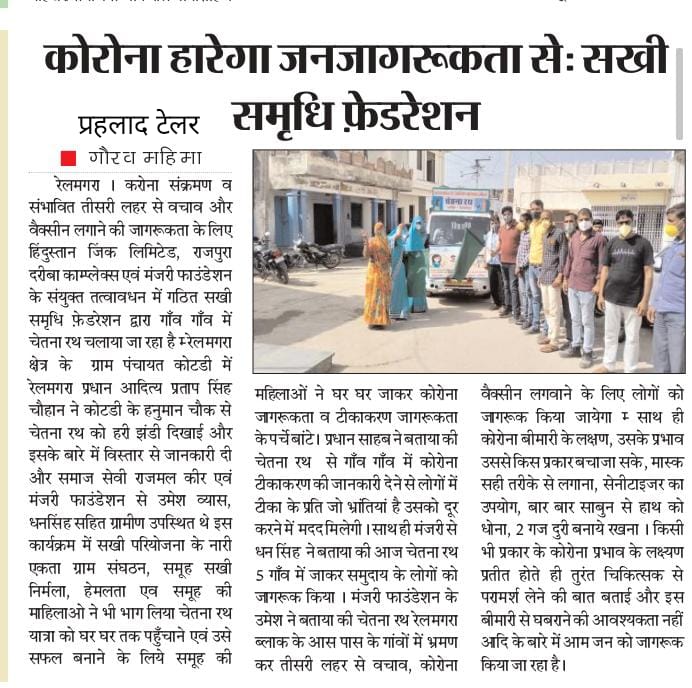हुरड़ा: गुलाबपुरा में जिंक व मंजरी फाउंडेशन के तत्वावधान में वैक्सीनेशन जागरूकता चेतना रथ को SDM ने हरी झंडी दिखाकर किया रवाना
