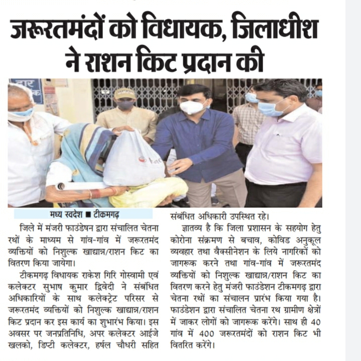 छांव प्रोजेक्ट के तहत फ्रंट लाइन वर्कर को किट वितरण