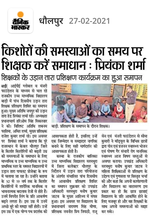 Manjari featured in Khabar Mewad Expresd