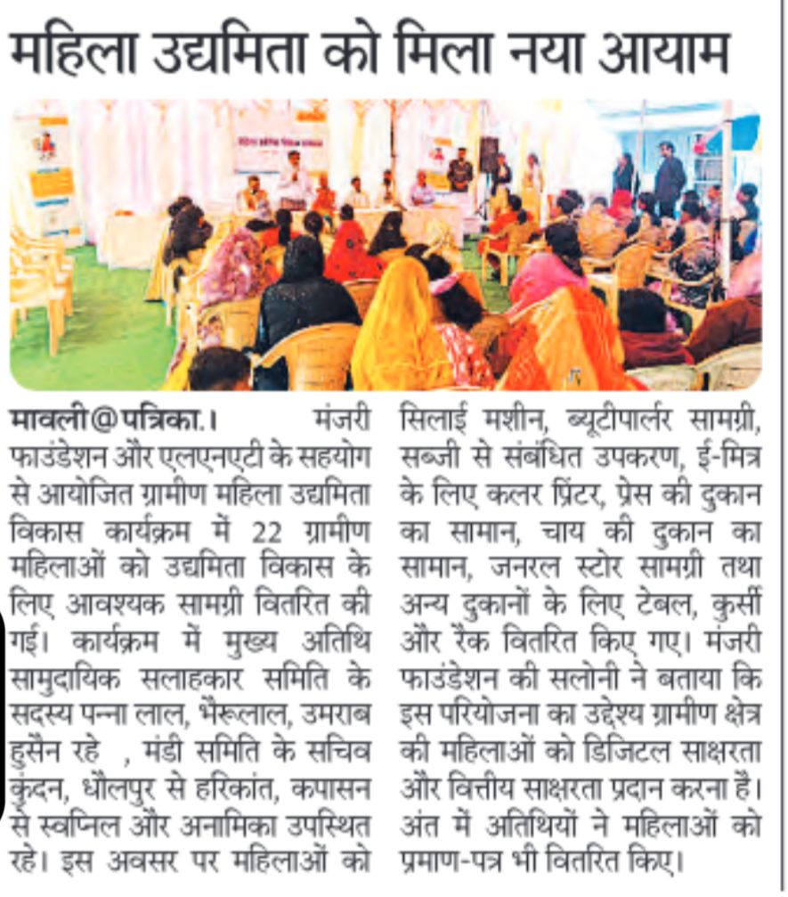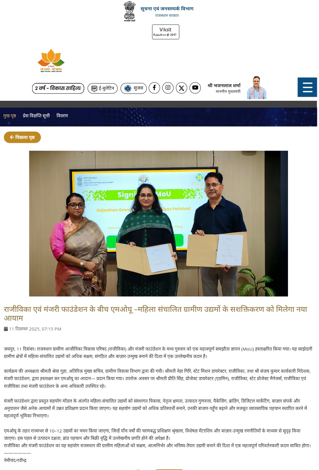 MOU signed between Manjari Foundation and Rajeevika